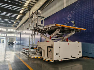 When loading and unloading on the main platform, the rotation of the container pallets or containers must be completed on the main platform, and the main platform must be at the lowest position to complete this operation.