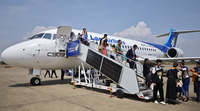 Tianyi co self-developed WTJ3600TKT type passenger boarding ladder (power), as a key ground equipment, for business C909 airliner Laos the successful completion of the first commercial flight, provides a solid power.