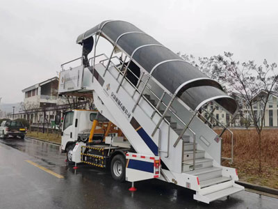 Our company's passenger boarding ladder has a curb weight of 7,350kg. The entire vehicle is made of new 960 high-strength steel and has a cruising range of 255Km.